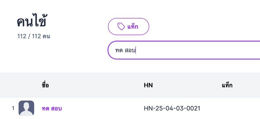 ปรับการค้นหาคนไข้ เพื่อให้การค้นหาสามารถ ค้นหาได้รวดเร็ว และตรงมากขึ้นโดย